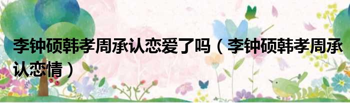 导读 大家好,今天小六子来为大家解答以下的问题,关于李钟硕韩孝周承认恋爱了吗,李钟硕韩孝周承认恋情这个很多人还不知道,现在让我们一起来看