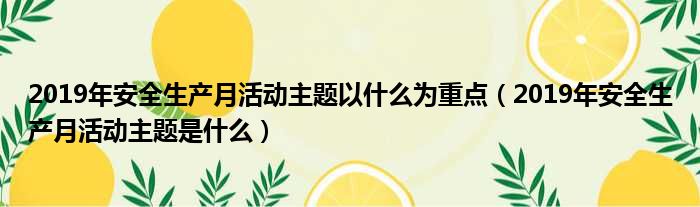 2019年安全生产月活动主题以什么为重点(2019年安全生产月活动主题是什么)