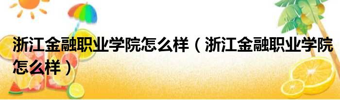 浙江金融职业学院怎么样(浙江金融职业学院怎么样)