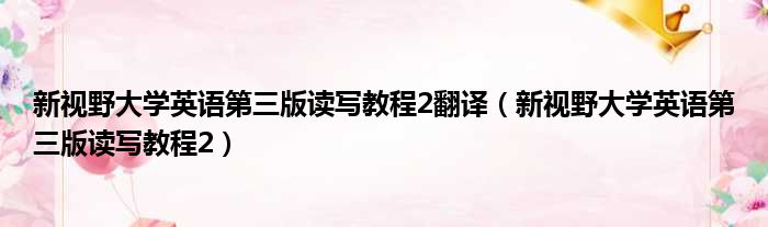 导读 大家好,今天小六子来为大家解答以下的问题,关于新视野大学英语第三版读写教程2翻译,新视野大学英语第三版读写教程2这个很多人还不知道,