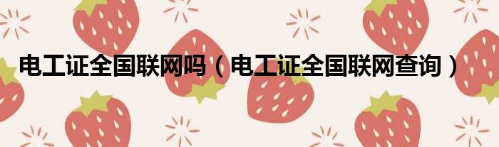导读 大家好,今天小六子来为大家解答以下的问题,关于电工证全国联网吗,电工证全国联网查询这个很多人还不知道,现在让我们一起来看看吧!1、如