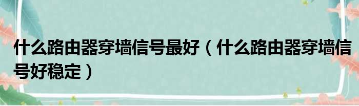 什么路由器穿墙信号最好(什么路由器穿墙信号好稳定)