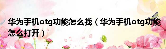 华为手机otg功能怎么找(华为手机otg功能怎么打开)