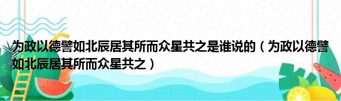 为政以德譬如北辰居其所而众星共之是谁说的(为政以德譬如北辰居其所而众星共之)