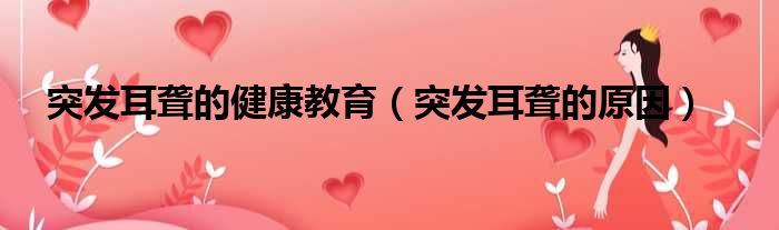 大家好,今天小六子来为大家解答以下的问题,关于突发耳聋的健康教育,突发耳聋的原因这个很多人还不知道,现在让我们一起来看看吧!