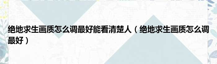 绝地求生画质怎么调最好能看清楚人(绝地求生画质怎么调最好)