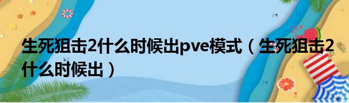导读 大家好,今天小六子来为大家解答以下的问题,关于生死狙击2什么时候出pve模式,生死狙击2什么时候出这个很多人还不知道,现在让我们一起来看