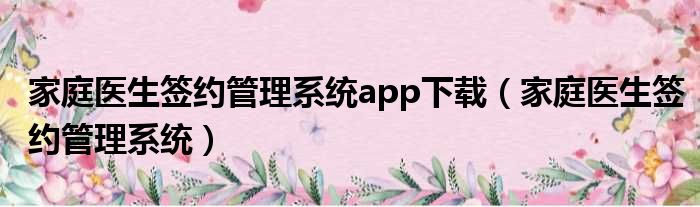 家庭医生签约管理系统app下载(家庭医生签约管理系统)