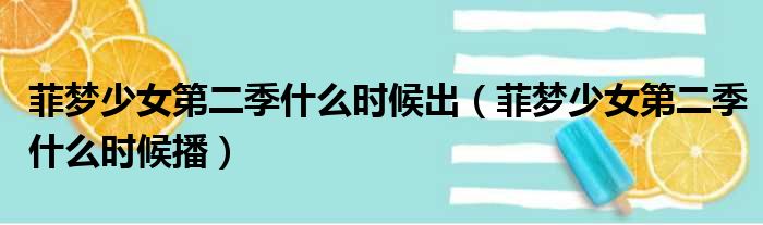 导读 大家好,今天小六子来为大家解答以下的问题,关于菲梦少女第二季什么时候出,菲梦少女第二季什么时候播这个很多人还不知道,现在让我们一起