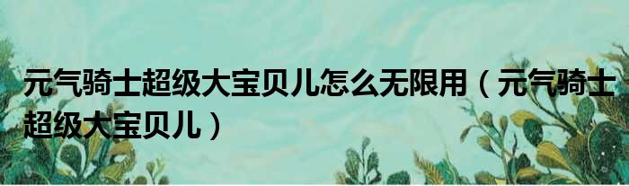 导读 大家好,今天小六子来为大家解答以下的问题,关于元气骑士超级大宝贝儿怎么无限用,元气骑士超级大宝贝儿这个很多人还不知道,现在让我们一