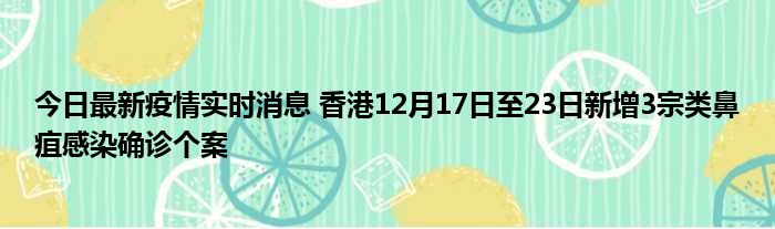 今日最新疫情实时消息 香港12月17日至23日新增3宗类鼻疽感染确诊个案