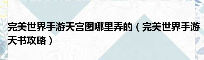完美世界手游天宫图哪里弄的(完美世界手游天书攻略)