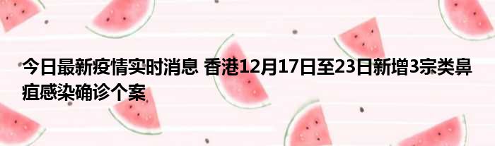 今日最新疫情实时消息 香港12月17日至23日新增3宗类鼻疽感染确诊个案