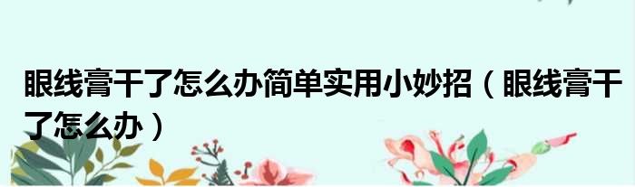 眼线膏干了怎么办简单实用小妙招(眼线膏干了怎么办)