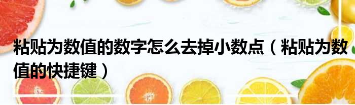 导读 大家好,今天小六子来为大家解答以下的问题,关于粘贴为数值的数字怎么去掉小数点,粘贴为数值的快捷键这个很多人还不知道,现在让我们一起