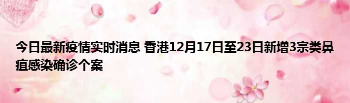 今日最新疫情实时消息 香港12月17日至23日新增3宗类鼻疽感染确诊个案
