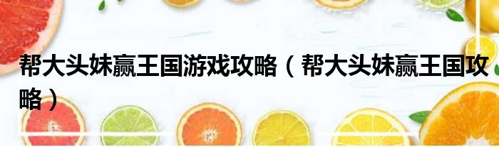 帮大头妹赢王国游戏攻略(帮大头妹赢王国攻略)