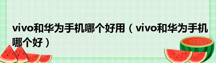 vivo和华为手机哪个好用(vivo和华为手机哪个好)