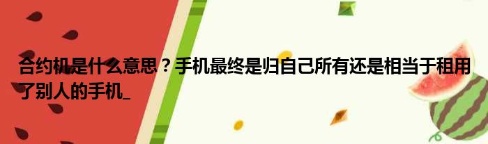 导读 大家好,今天小六子来为大家解答以下的问题,关于合约机是什么意思?手机最终是归自己所有还是相当于租用了别人的手机_这个很多人还不知道,