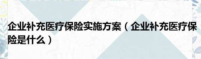 企业补充医疗保险实施方案(企业补充医疗保险是什么)