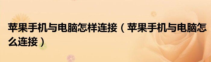 苹果手机与电脑怎样连接(苹果手机与电脑怎么连接)