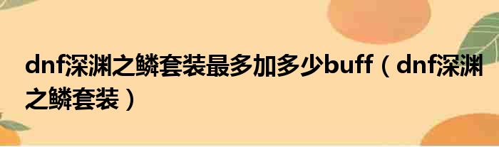 dnf深渊之鳞套装最多加多少buff(dnf深渊之鳞套装)