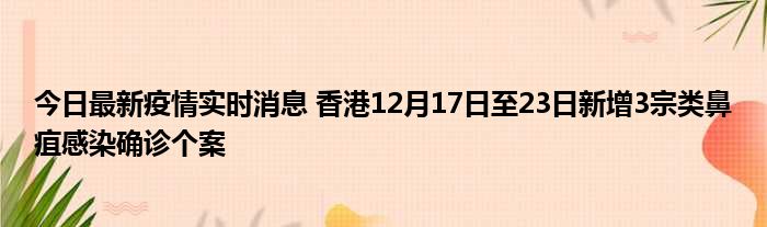 今日最新疫情实时消息 香港12月17日至23日新增3宗类鼻疽感染确诊个案