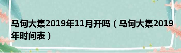 马甸大集2019年11月开吗(马甸大集2019年时间表)