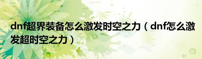 导读 大家好,今天小六子来为大家解答以下的问题,关于dnf超界装备怎么激发时空之力,dnf怎么激发超时空之力这个很多人还不知道,现在让我们一起