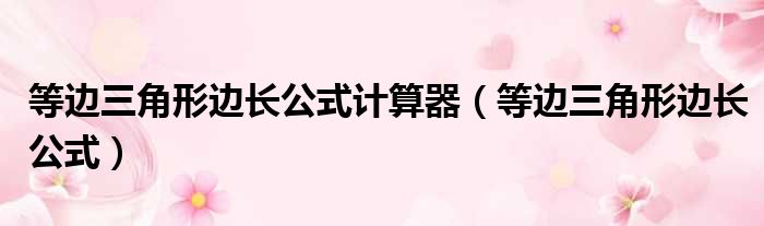 导读 大家好,今天小六子来为大家解答以下的问题,关于等边三角形边长公式计算器,等边三角形边长公式这个很多人还不知道,现在让我们一起来看看