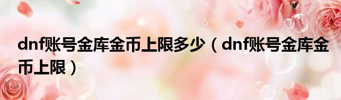 导读 大家好,今天小六子来为大家解答以下的问题,关于dnf账号金库金币上限多少,dnf账号金库金币上限这个很多人还不知道,现在让我们一起来看看
