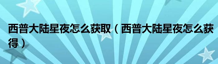 西普大陆星夜怎么获取(西普大陆星夜怎么获得)