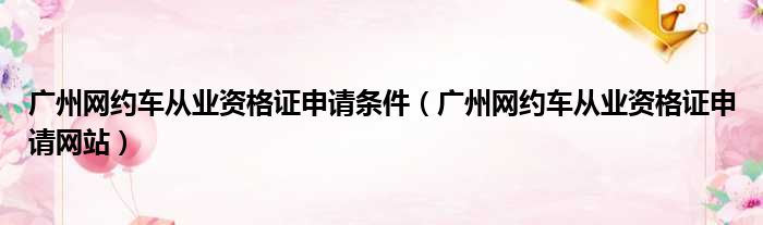 广州网约车从业资格证申请条件(广州网约车从业资格证申请网站)