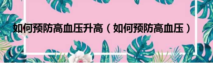 大家好,今天小六子来为大家解答以下的问题,关于如何预防高血压升高,如何预防高血压这个很多人还不知道,现在让我们一起来看看吧!