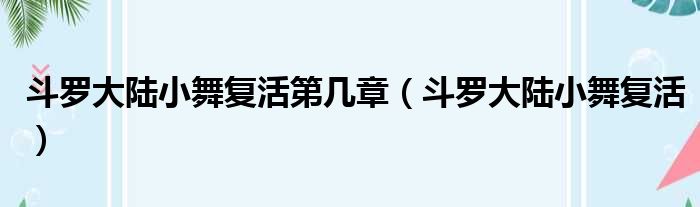斗罗大陆小舞复活第几章(斗罗大陆小舞复活)