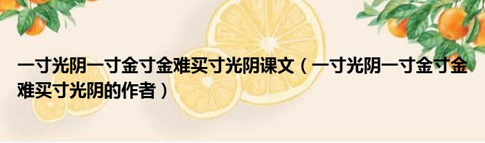 一寸光阴一寸金寸金难买寸光阴课文(一寸光阴一寸金寸金难买寸光阴的作者)
