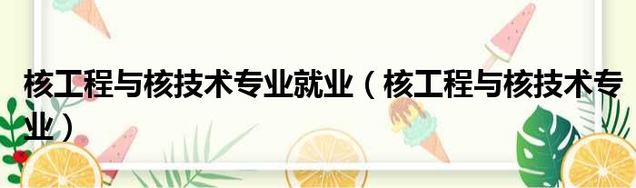 导读 大家好,今天小六子来为大家解答以下的问题,关于核工程与核技术专业就业,核工程与核技术专业这个很多人还不知道,现在让我们一起来看看吧