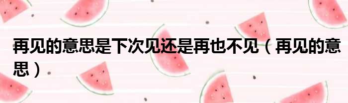 导读 大家好,今天小六子来为大家解答以下的问题,关于再见的意思是下次见还是再也不见,再见的意思这个很多人还不知道,现在让我们一起来看看吧