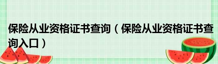 导读 大家好,今天小六子来为大家解答以下的问题,关于保险从业资格证书查询,保险从业资格证书查询入口这个很多人还不知道,现在让我们一起来看