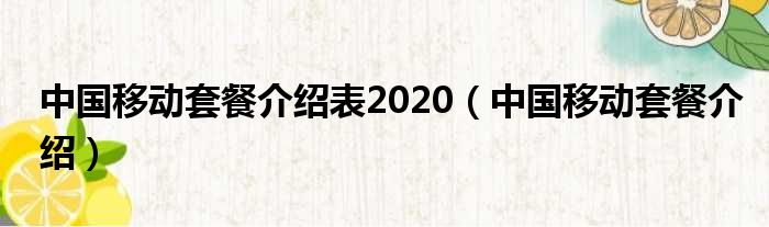 导读 大家好,今天小六子来为大家解答以下的问题,关于中国移动套餐介绍表2020,中国移动套餐介绍这个很多人还不知道,现在让我们一起来看看吧!1