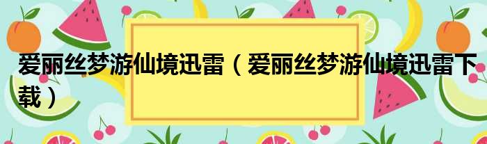 导读 大家好,今天小六子来为大家解答以下的问题,关于爱丽丝梦游仙境迅雷,爱丽丝梦游仙境迅雷下载这个很多人还不知道,现在让我们一起来看看吧