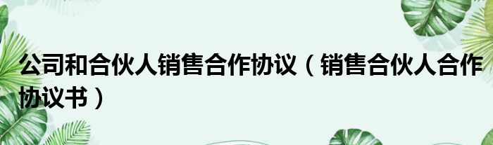 公司和合伙人销售合作协议(销售合伙人合作协议书)