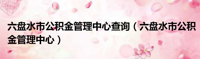六盘水市公积金管理中心查询(六盘水市公积金管理中心)
