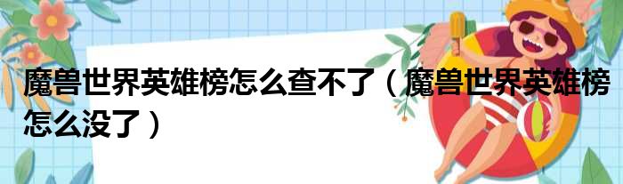 导读 大家好,今天小六子来为大家解答以下的问题,关于魔兽世界英雄榜怎么查不了,魔兽世界英雄榜怎么没了这个很多人还不知道,现在让我们一起来