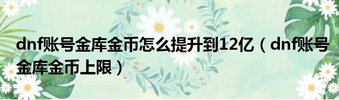 dnf账号金库金币怎么提升到12亿(dnf账号金库金币上限)