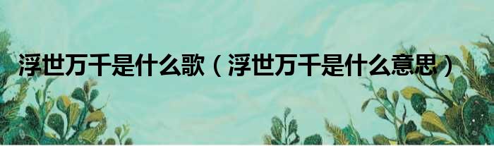 导读 大家好,今天小六子来为大家解答以下的问题,关于浮世万千是什么歌,浮世万千是什么意思这个很多人还不知道,现在让我们一起来看看吧!1、意