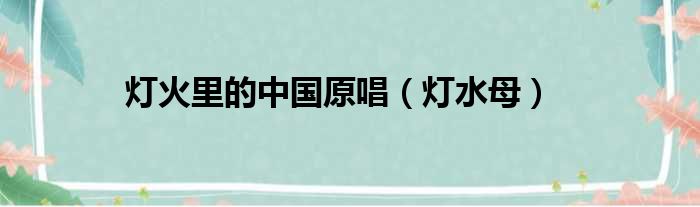 大家好,今天小六子来为大家解答以下的问题,关于灯火里的中国原唱,灯水母这个很多人还不知道,现在让我们一起来看看吧!