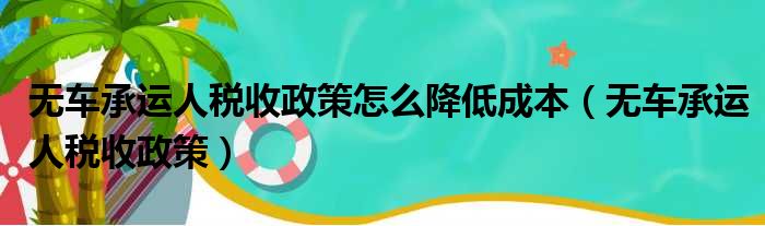 无车承运人税收政策怎么降低成本(无车承运人税收政策)