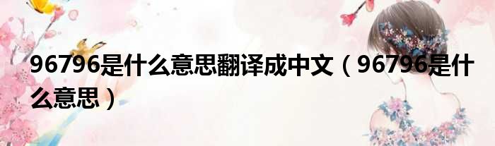 导读 大家好,今天小六子来为大家解答以下的问题,关于96796是什么意思翻译成中文,96796是什么意思这个很多人还不知道,现在让我们一起来看看吧