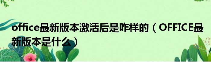 office最新版本激活后是咋样的(OFFICE最新版本是什么)